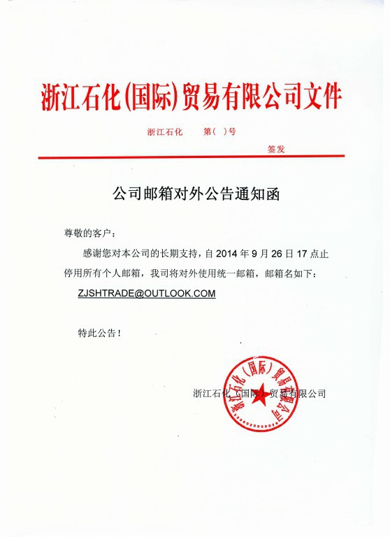 浙江石化对外邮箱变更