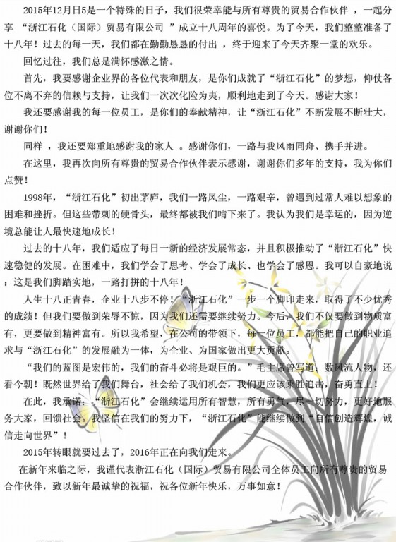 浙江石化(国际)贸易有限公司,于1999年11月经浙江省工商行政管理局审核批准,在绍兴注册成立。公司经营石油产品、化工、能源、聚酯纤维等国际大宗商品贸易。